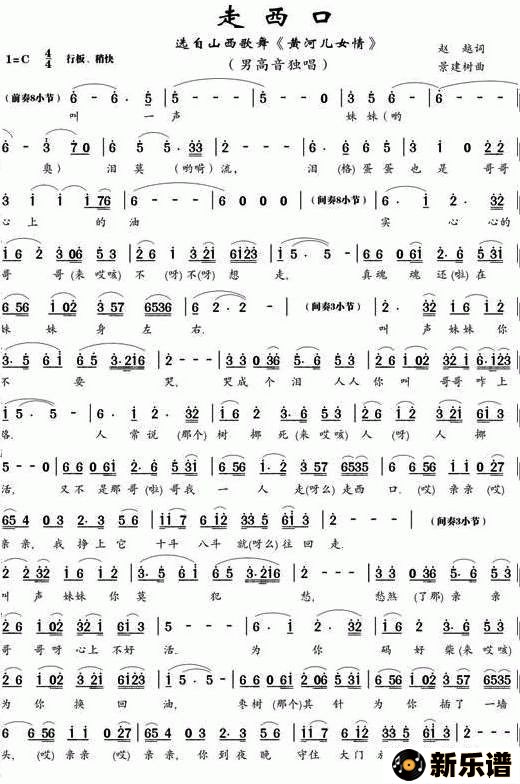 演唱的走西口歌词,走西口最新曲谱.