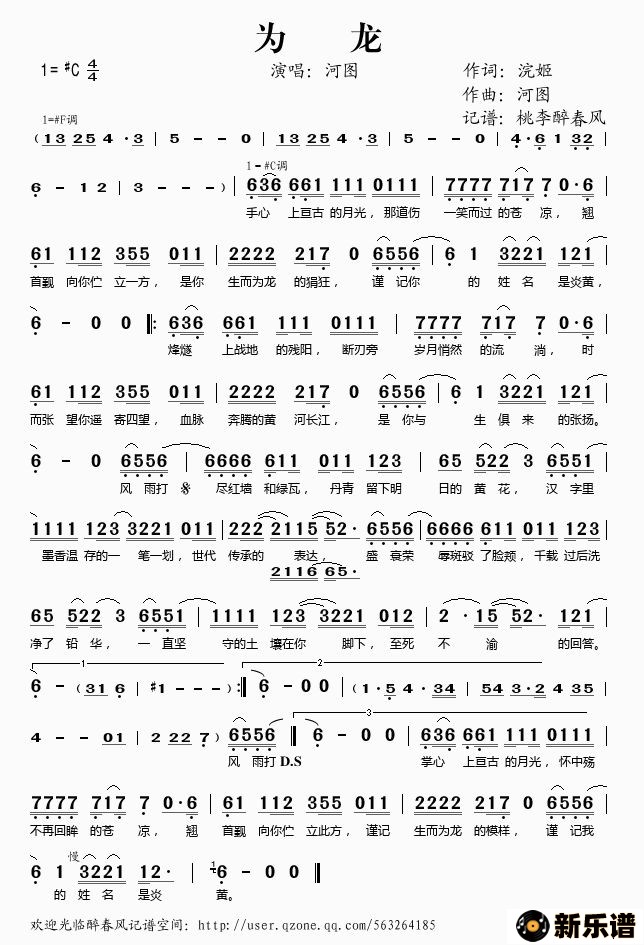《为龙》最新曲谱 河图-桃李醉春风制谱