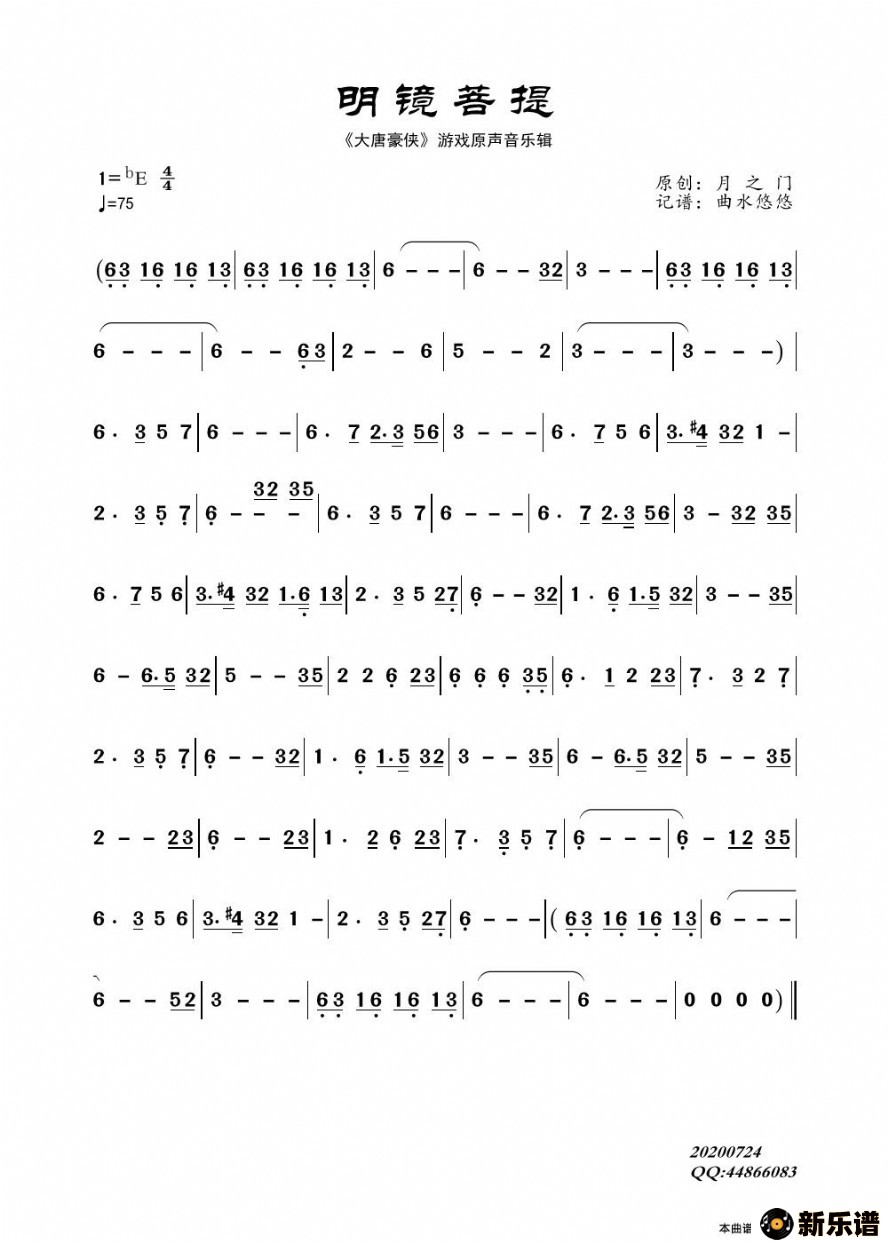 《明镜菩提》最新曲谱 不详-曲水悠悠制谱