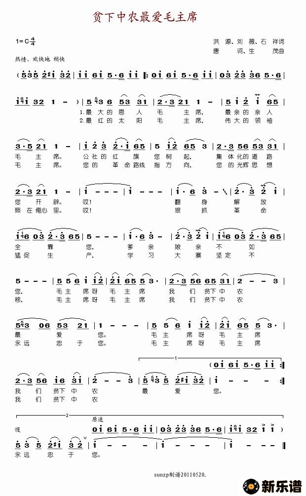 《贫下中农最爱毛主席》最新曲谱 马玉涛