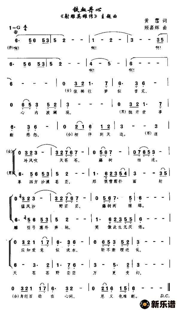 > 铁血丹心(电视剧《射雕英雄传》主题歌)最新曲谱