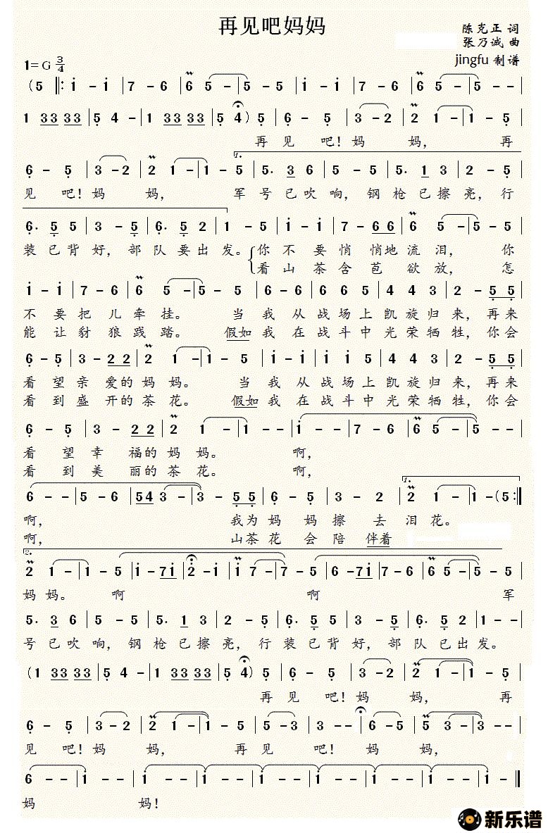 作词:陈克正 作曲:张乃诚(又名:再见吧,妈妈)