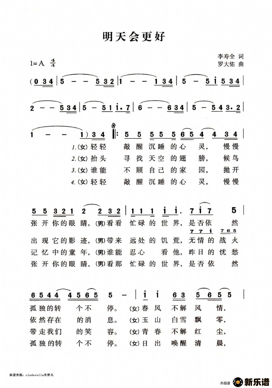 群星演唱的明天会更好歌词,明天会更好最新曲谱.
