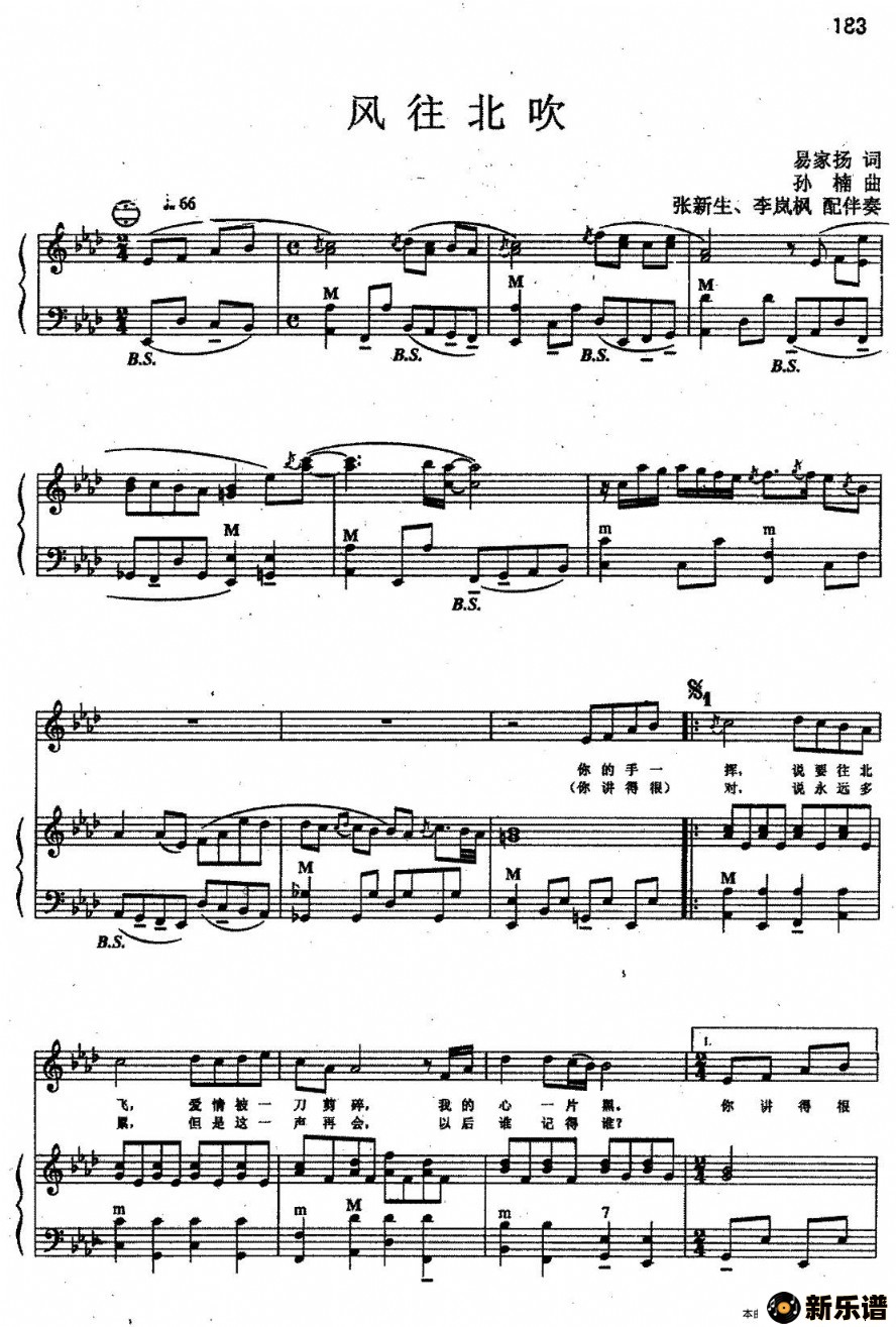 演唱的风往北吹歌词,风往北吹最新曲谱.