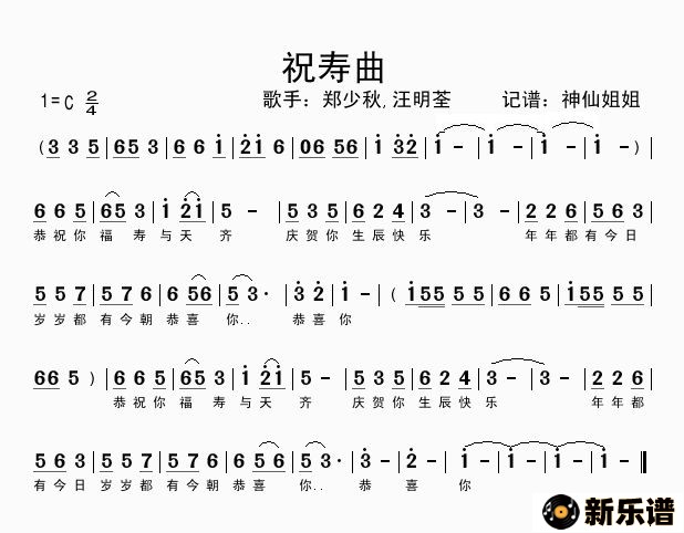 郑少秋、汪明荃演唱的祝寿曲歌词,祝寿曲最新曲谱.