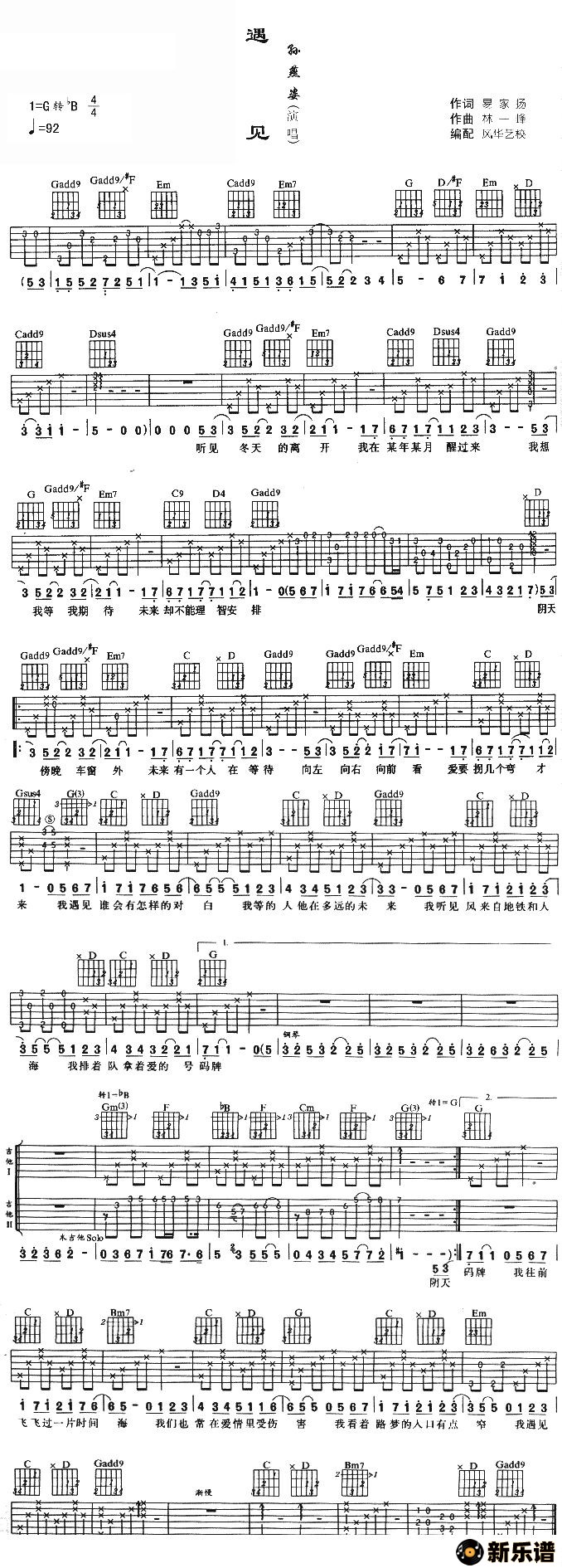 孙燕姿演唱的遇见歌词,遇见最新曲谱.