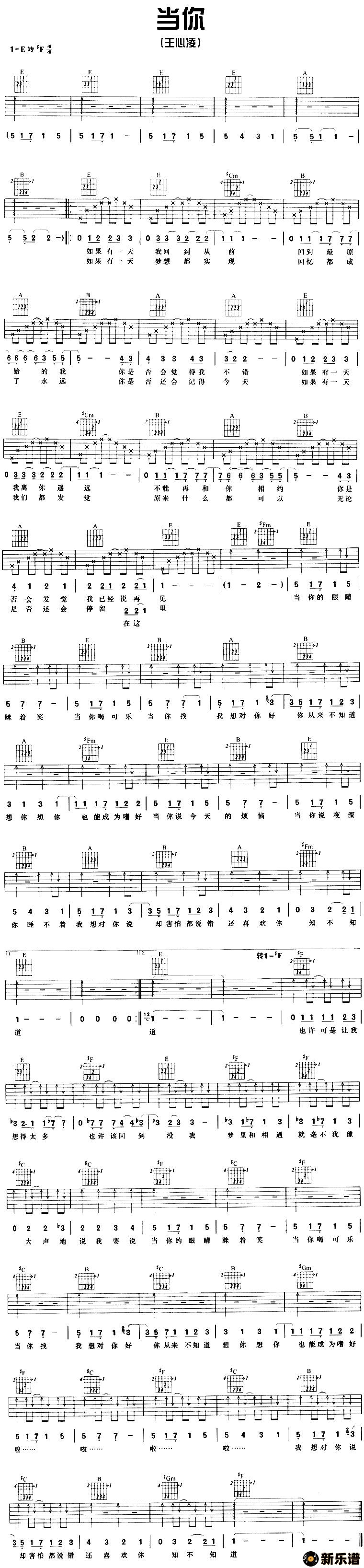 《当你》最新曲谱 王心凌