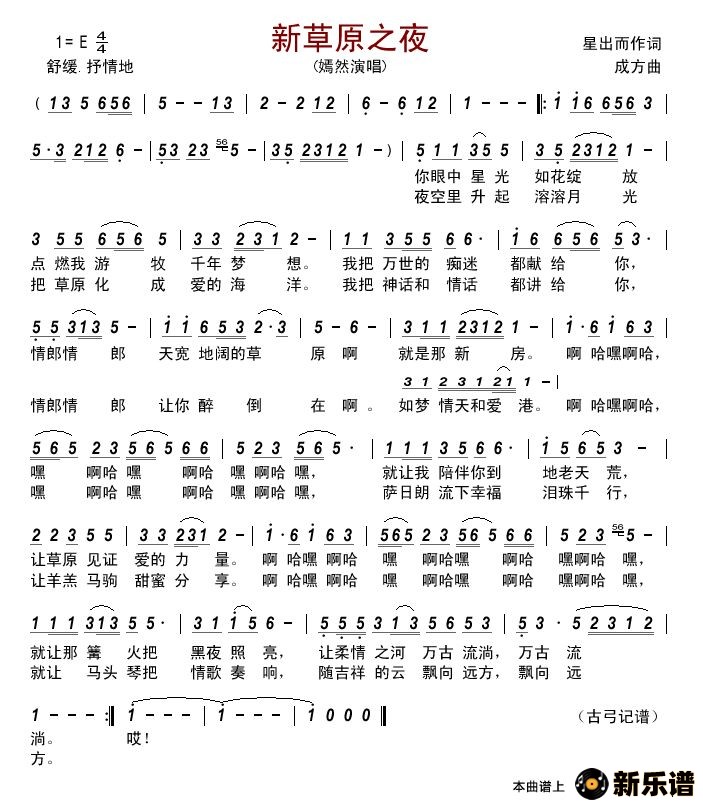 《新草原之夜 》最新曲谱 嫣然-古弓制谱