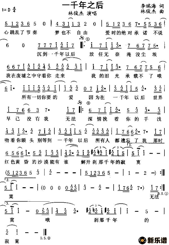 林俊杰演唱的一千年以后歌词,一千年以后最新曲谱.