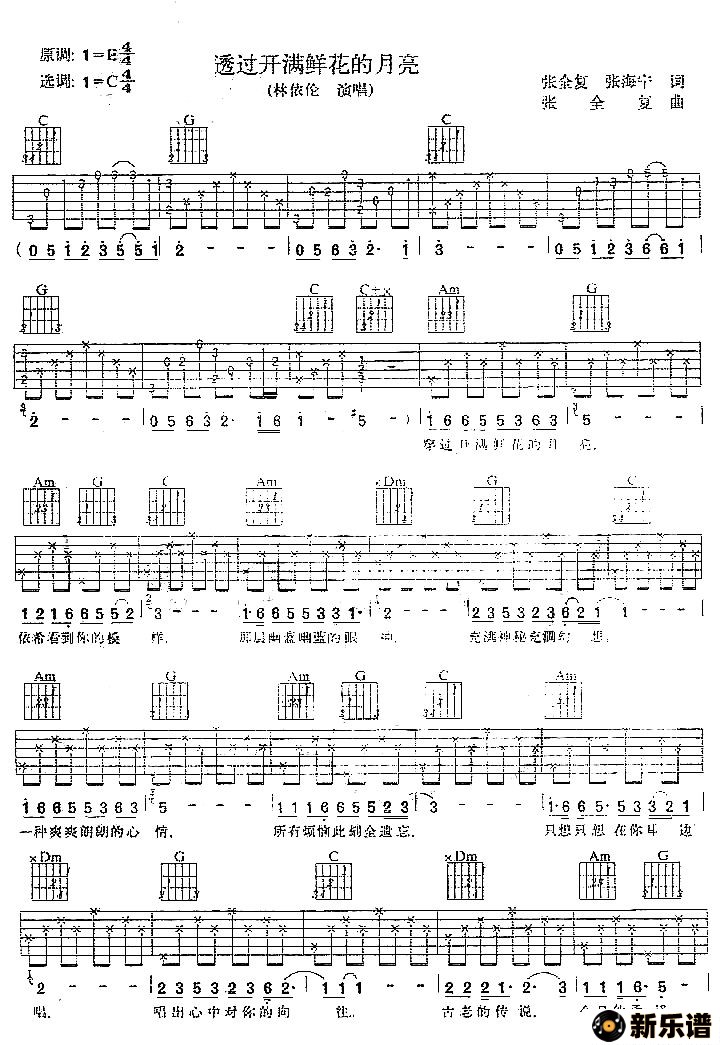 《透过开满鲜花的月亮》最新曲谱 林依伦