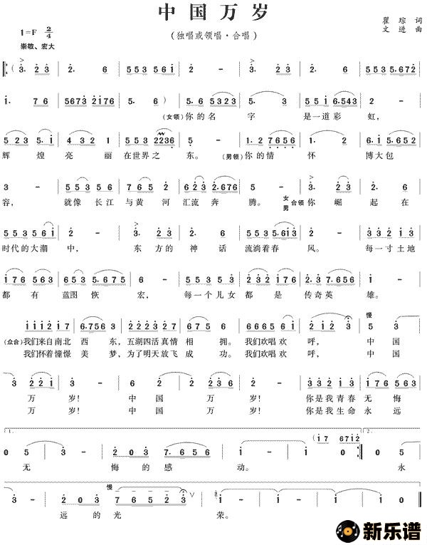 演唱的中国万岁歌词,中国万岁最新曲谱.