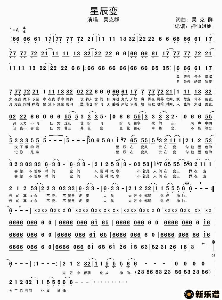 吴克群演唱的星辰变歌词,星辰变最新曲谱.