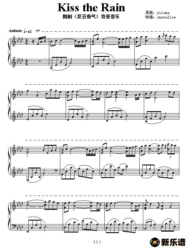 演唱的kiss the rain歌词,kiss the rain最新曲谱.
