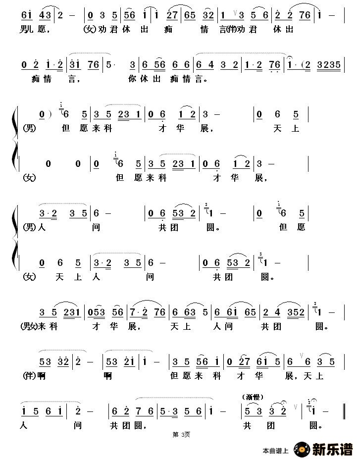 《天上人间共团圆》最新曲谱 杨国民/张慧