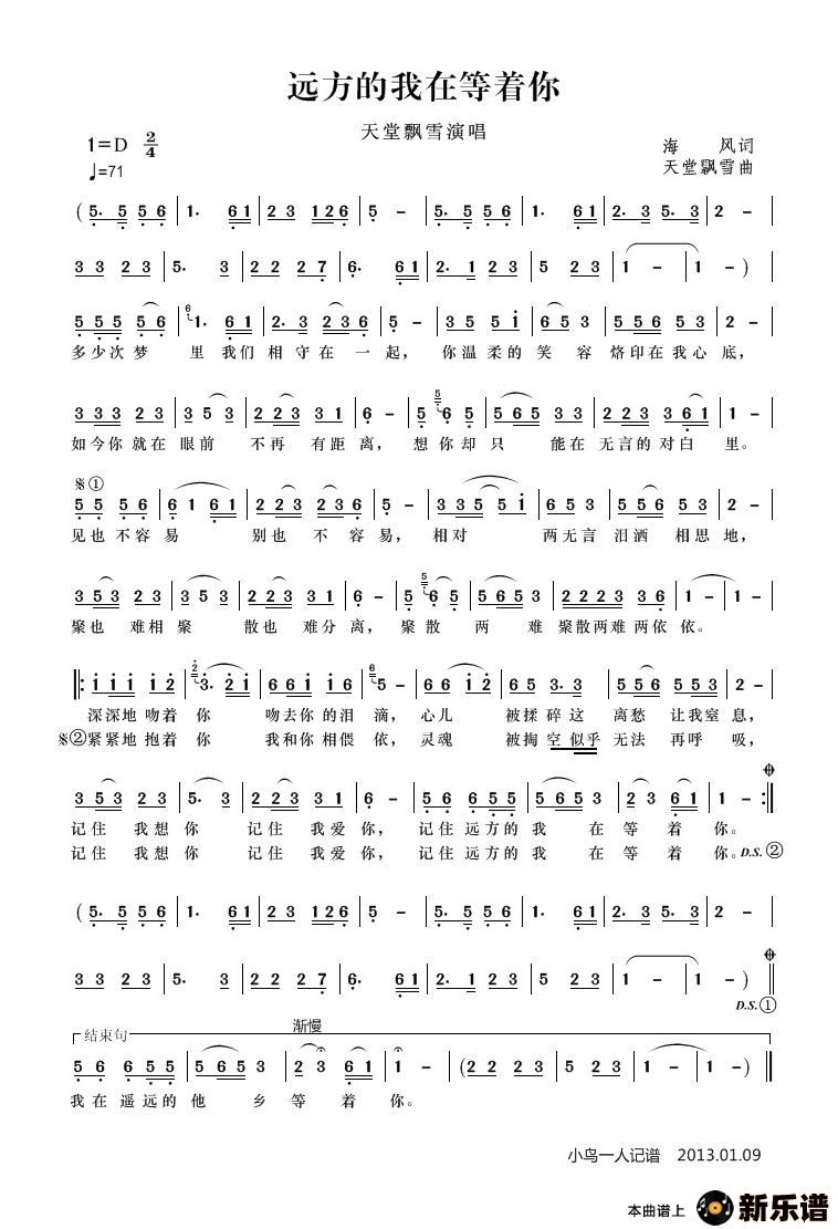《远方的我在等着你》最新曲谱 天堂飘雪
