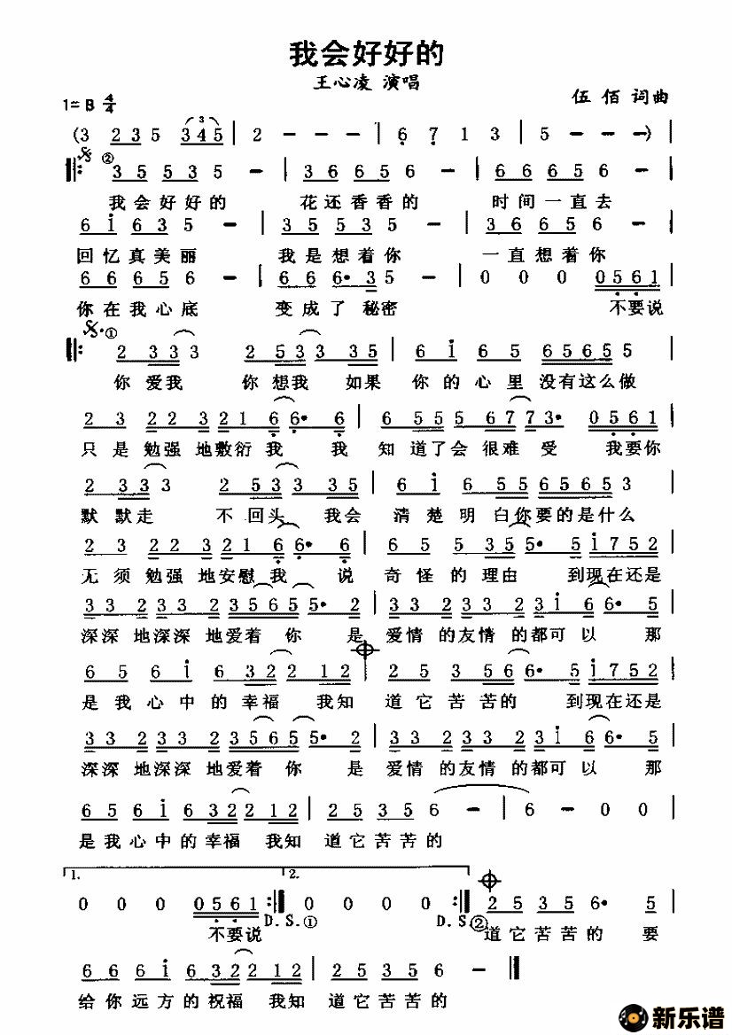 王心凌演唱的我会好好的歌词,我会好好的最新曲谱.