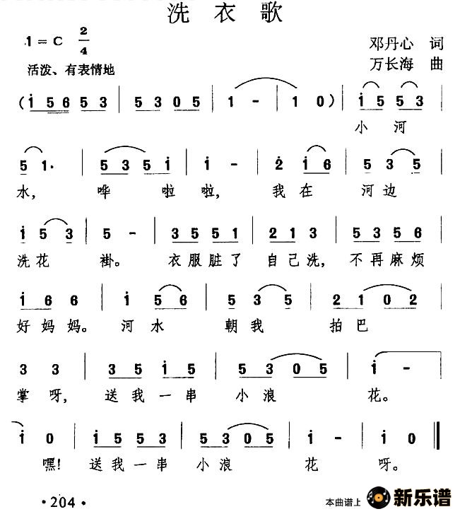 > 洗衣歌最新曲谱