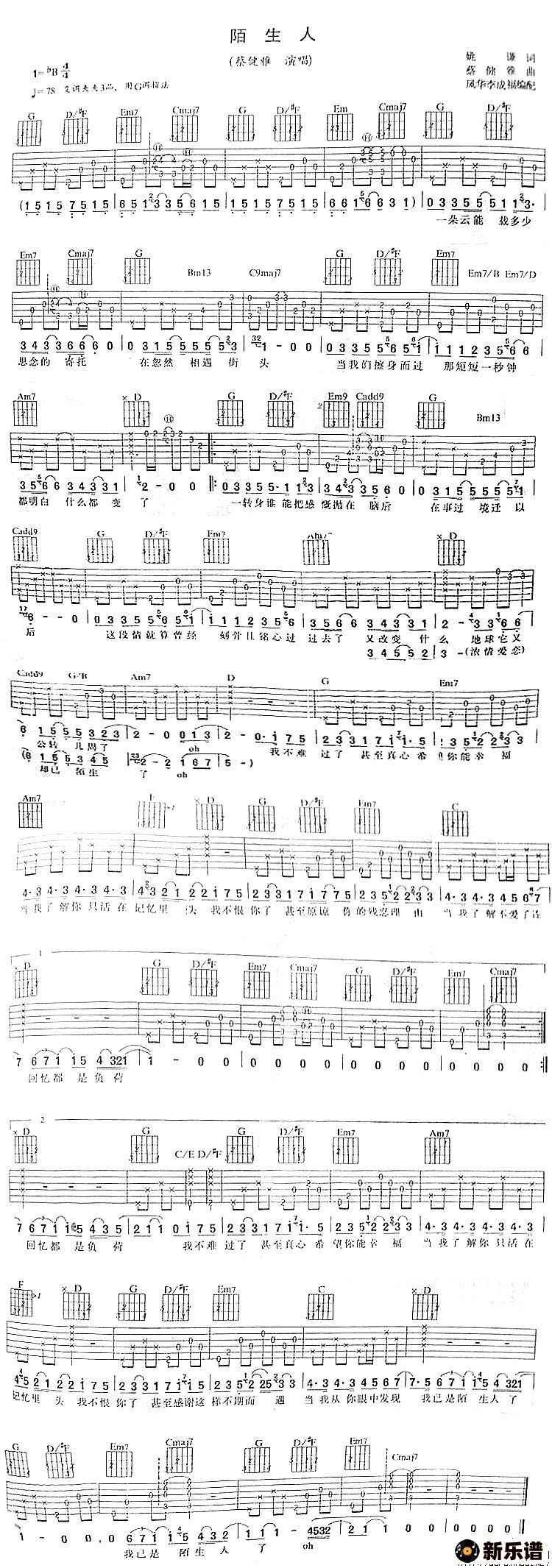 蔡健雅演唱的陌生人歌词,陌生人最新曲谱.