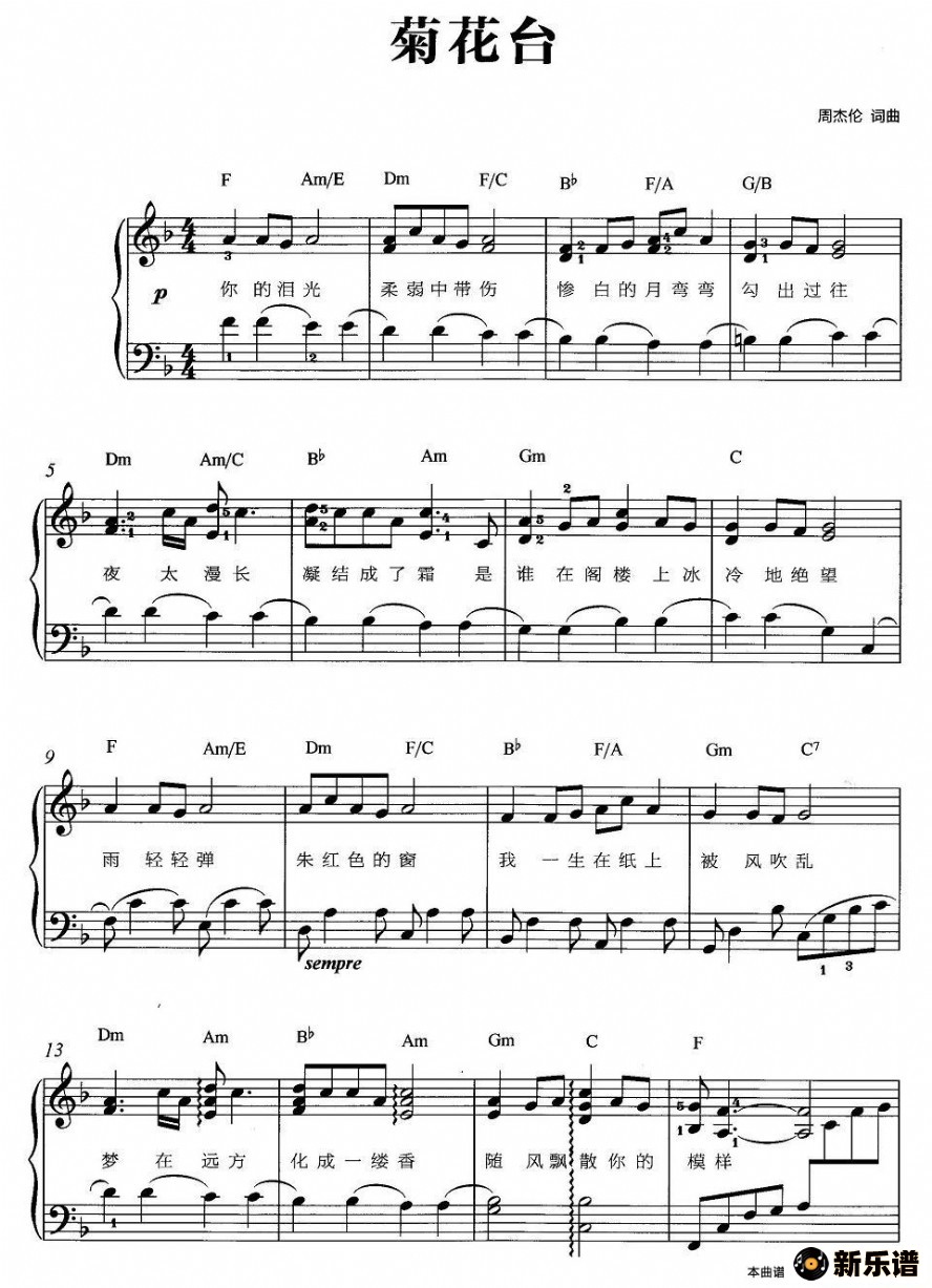 周杰伦演唱的菊花台歌词,菊花台最新曲谱.