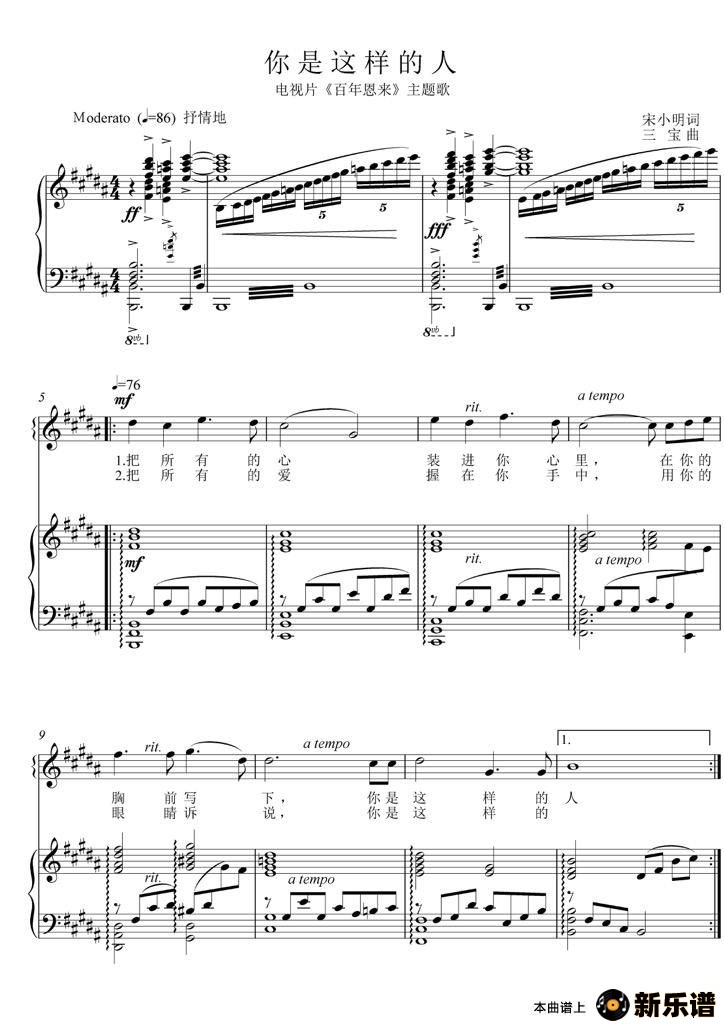 你是这样的人(大型电视艺术片《百年恩来》主题歌、正谱)
