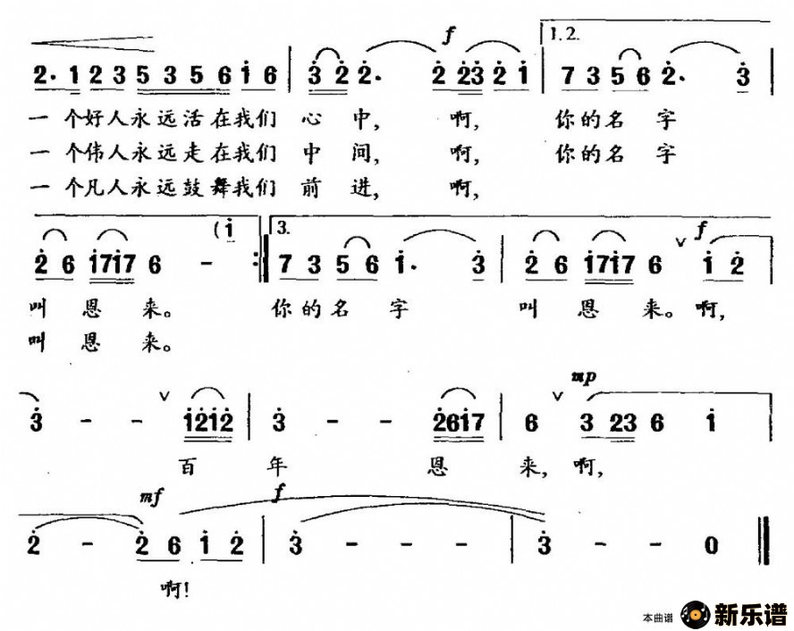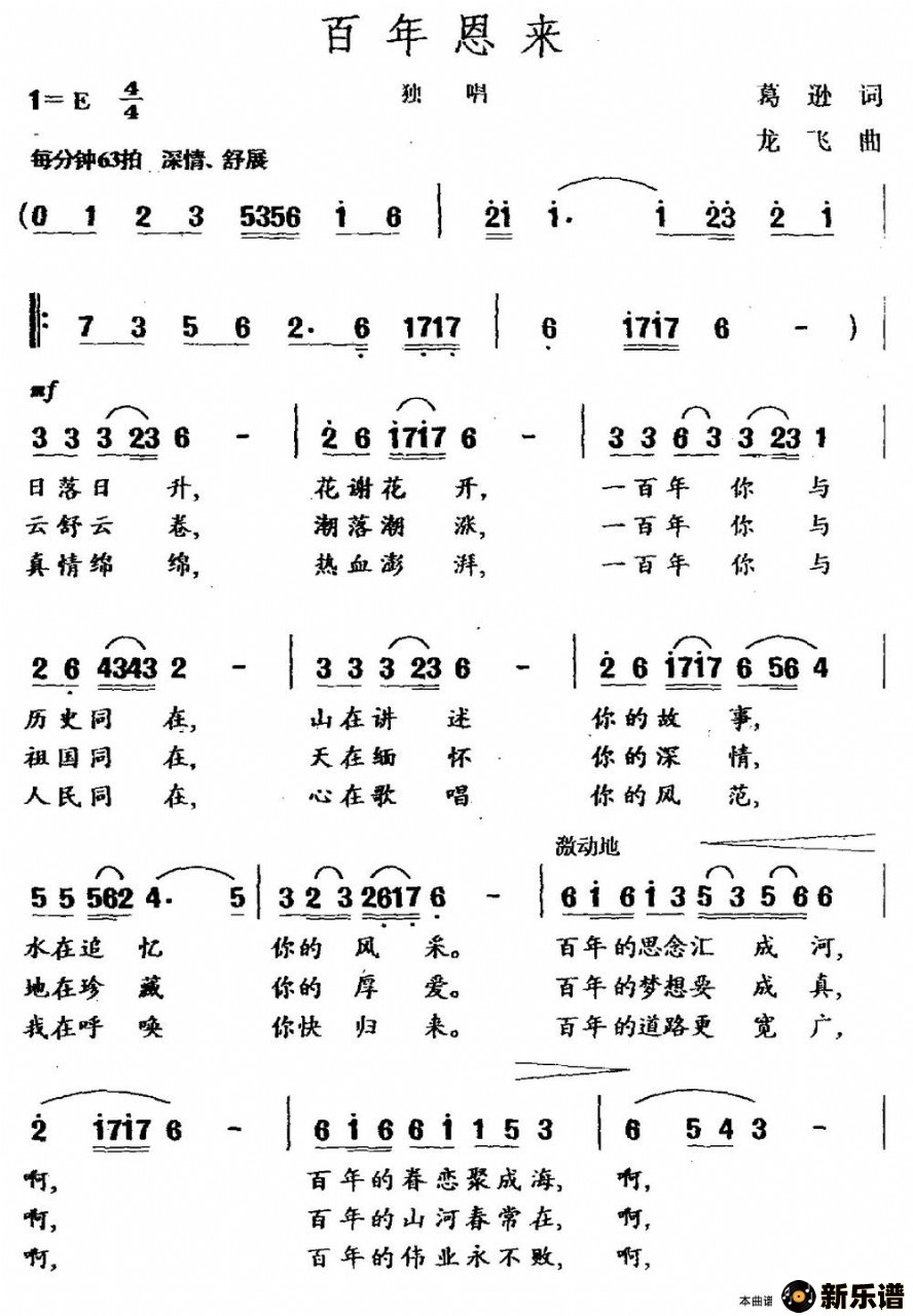 演唱的百年恩来歌词,百年恩来最新曲谱.