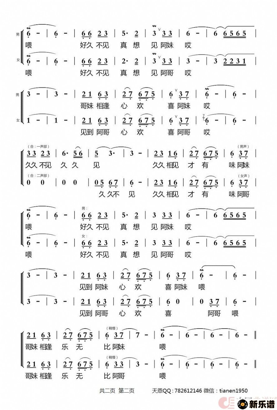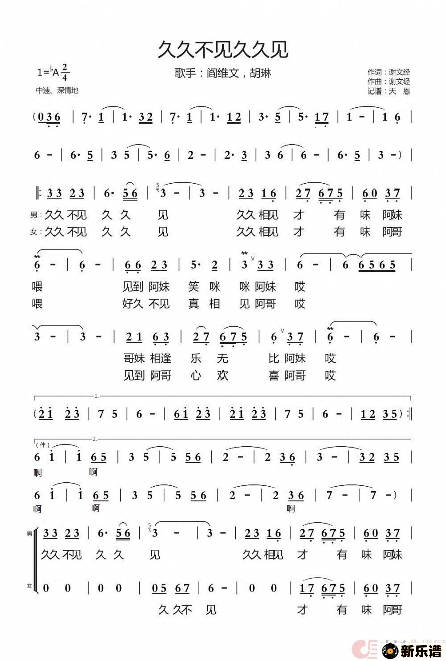 《久久不见久久见》最新曲谱 阎维文/胡琳-天恩制谱