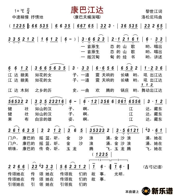 康巴天蝎演唱的康巴江达 歌词,康巴江达 最新曲谱.