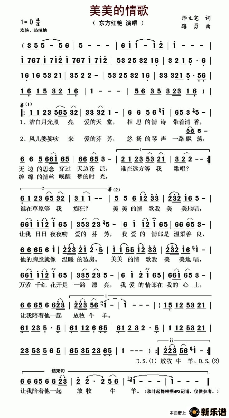 《美美的情歌》最新曲谱 东方红艳