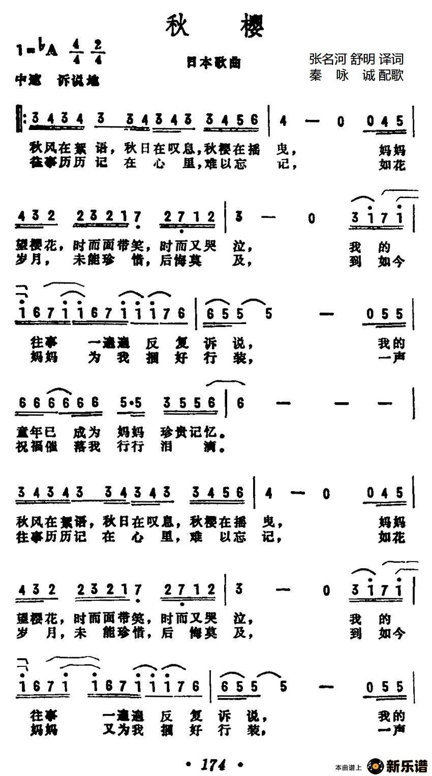山口百惠演唱的【日】秋樱歌词,【日】秋樱最新曲谱.