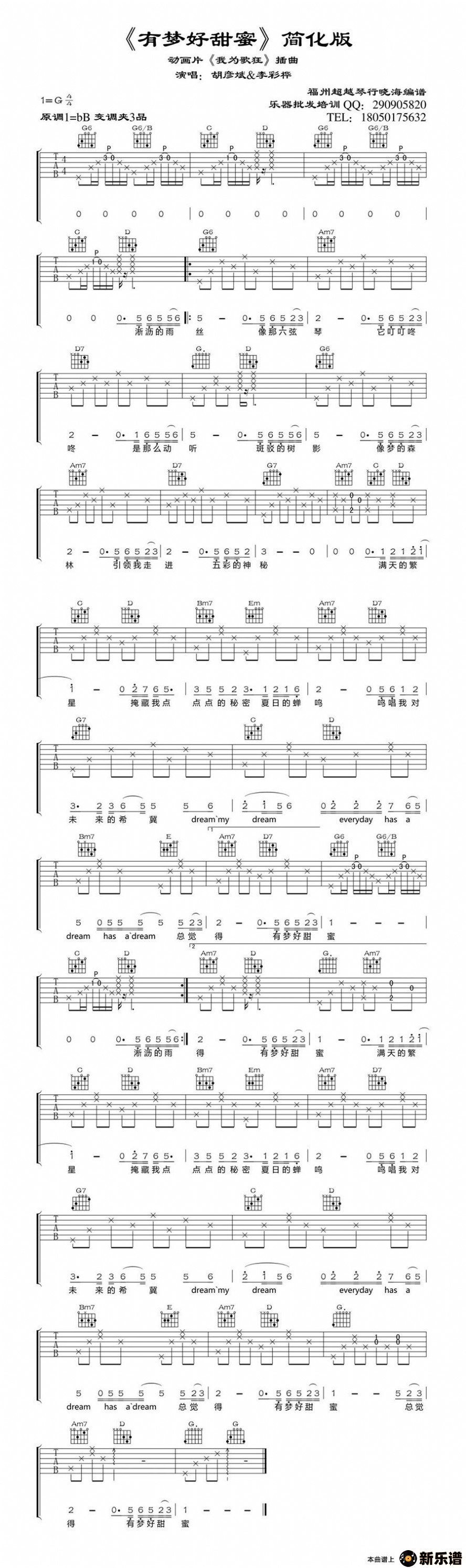 《有梦好甜蜜》最新曲谱 胡彦斌