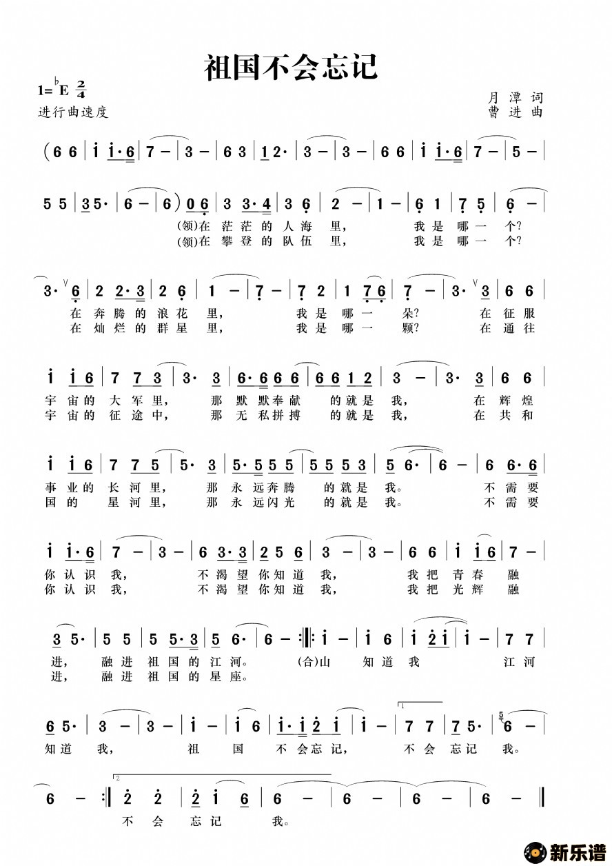 演唱的祖国不会忘记歌词,祖国不会忘记最新曲谱.