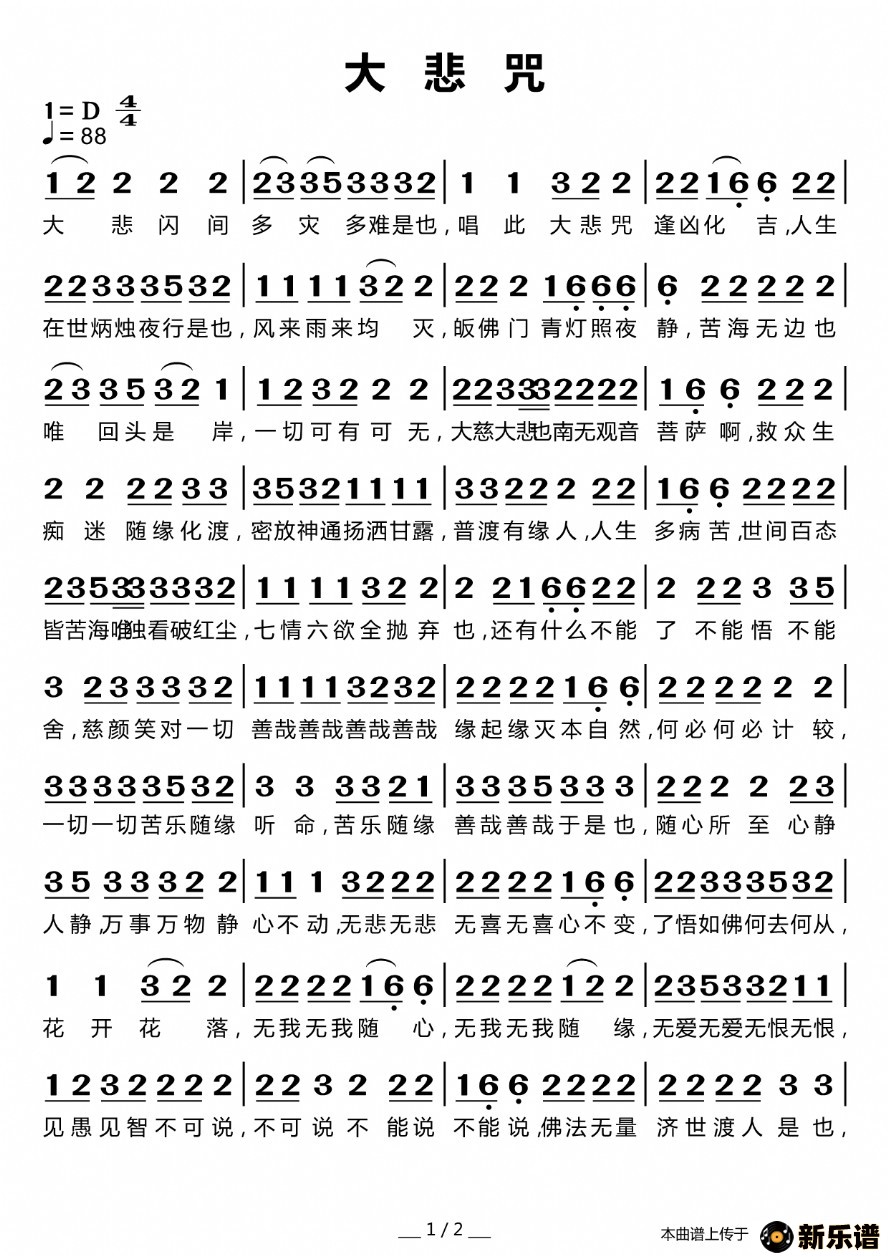 演唱的大悲咒歌词,大悲咒最新曲谱.