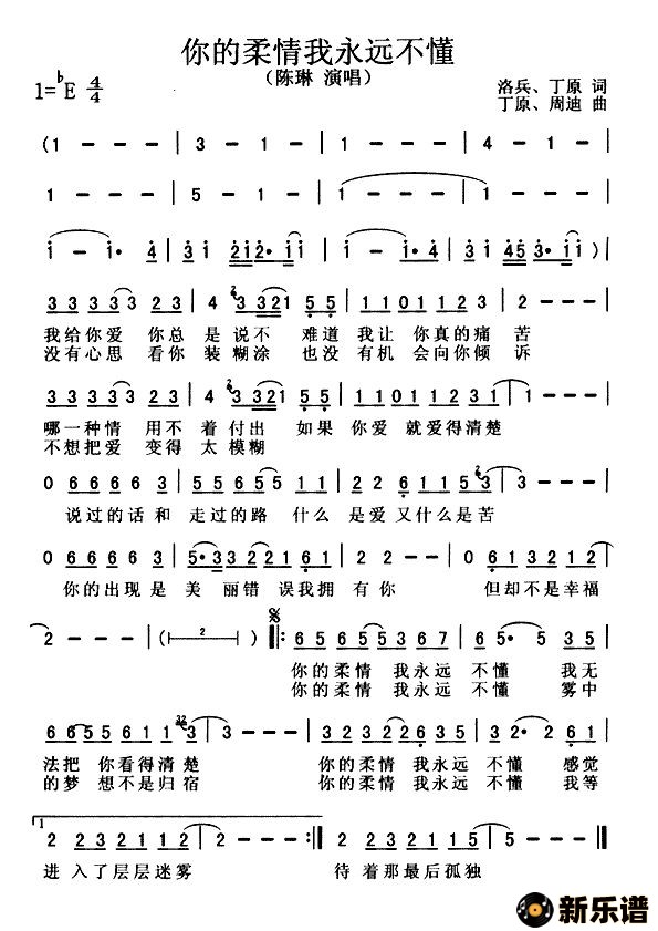 陈琳演唱的你的柔情我永远不懂歌词,你的柔情我永远不懂最新曲谱.