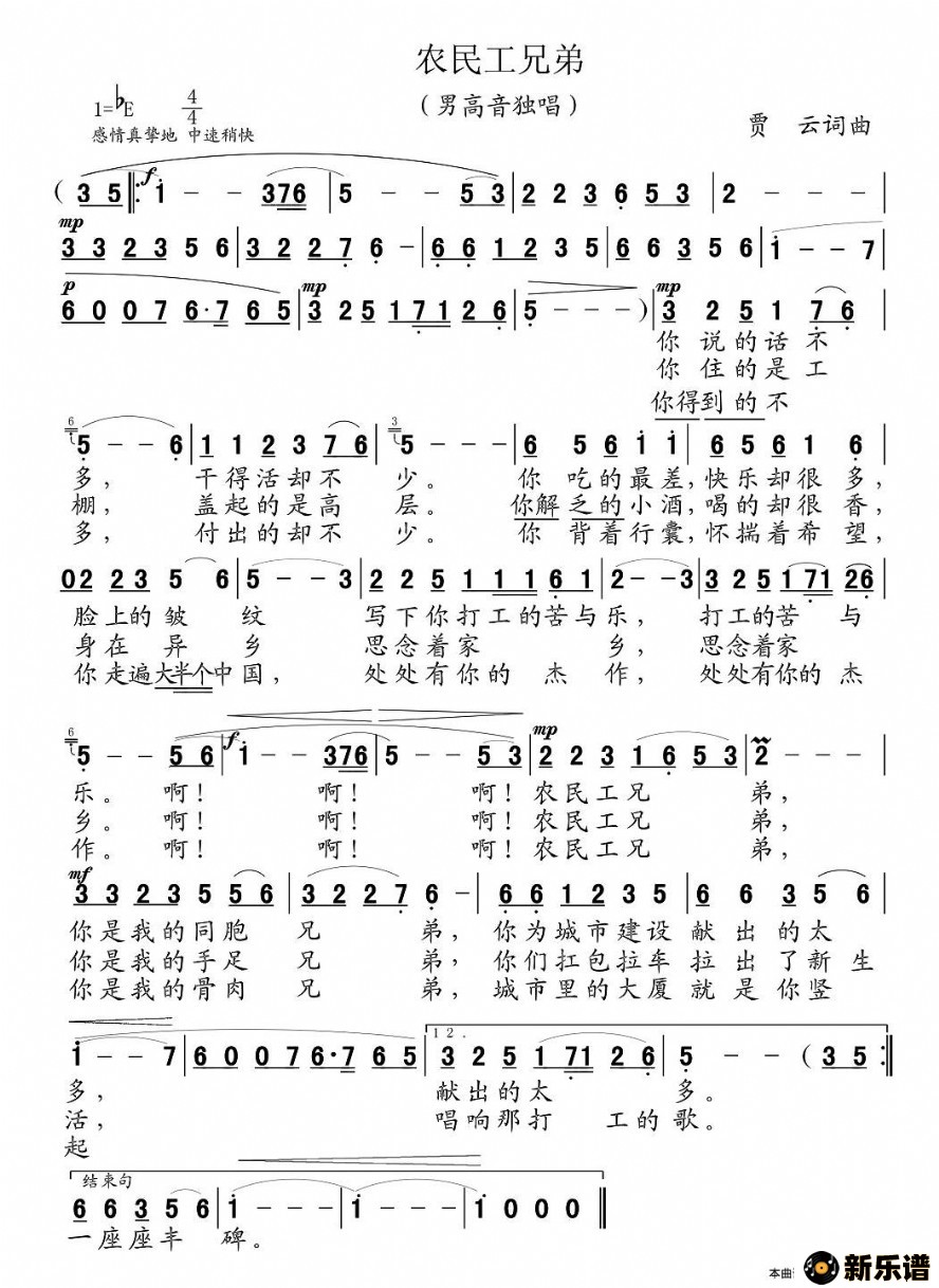 演唱的农民工兄弟歌词,农民工兄弟最新曲谱.