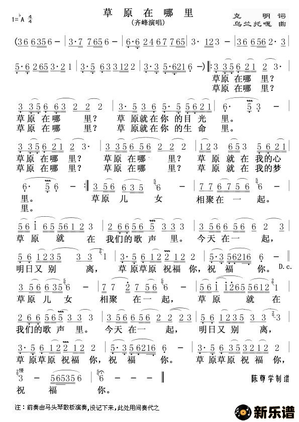 齐峰演唱的草原在哪里歌词,草原在哪里最新曲谱.