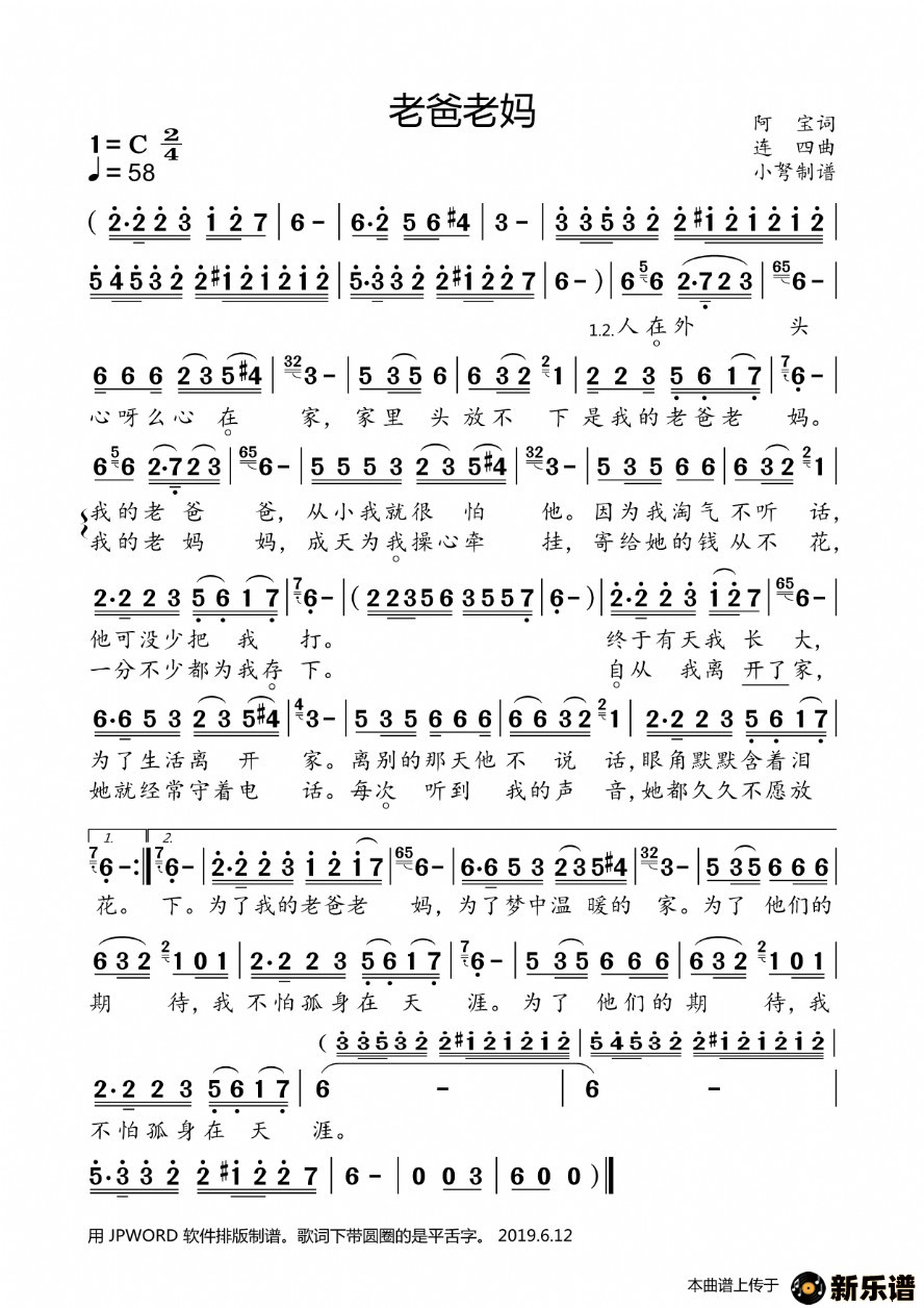 小沈阳演唱的老爸老妈歌词,老爸老妈最新曲谱.