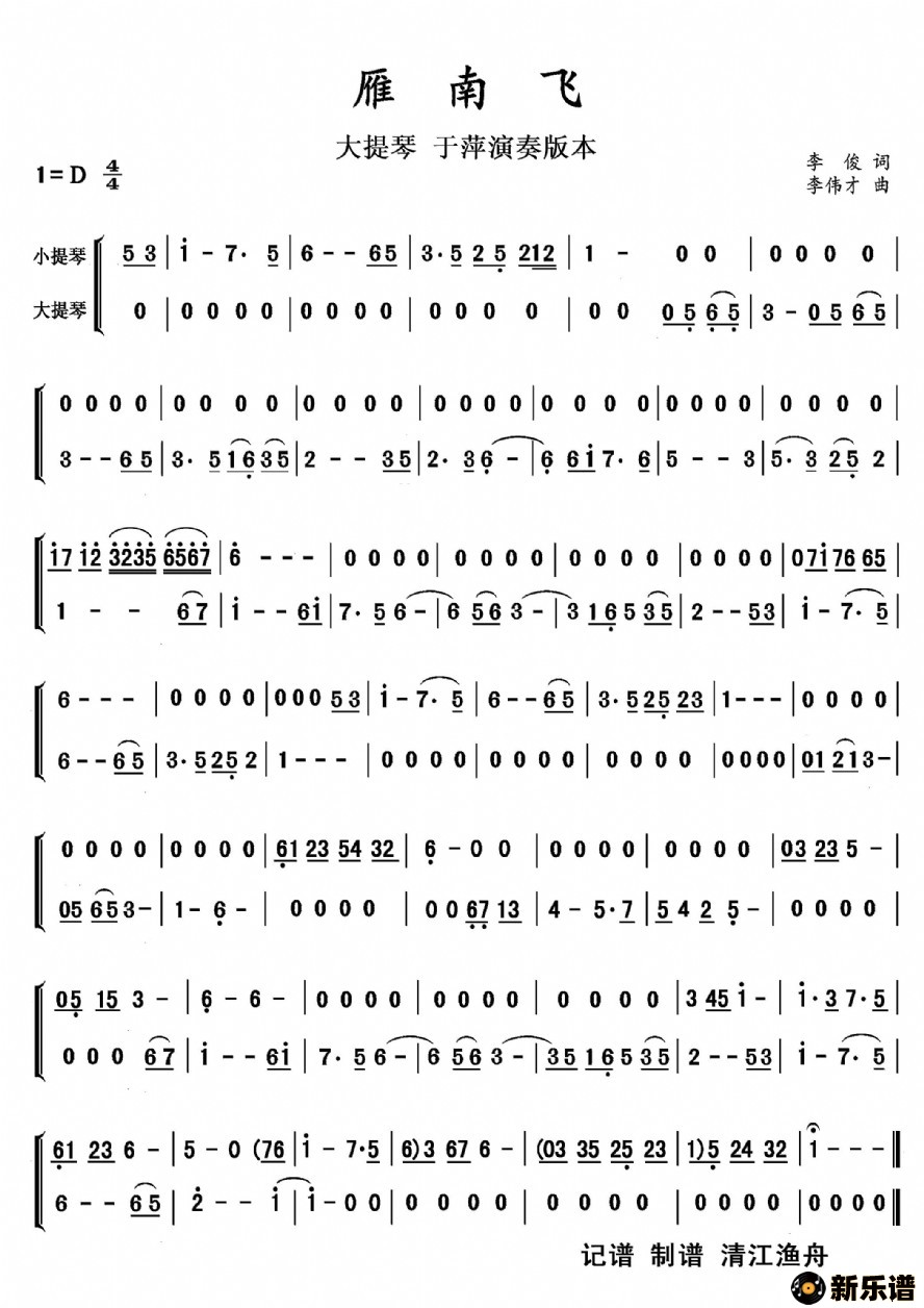 于萍演唱的雁南飞歌词,雁南飞最新曲谱.