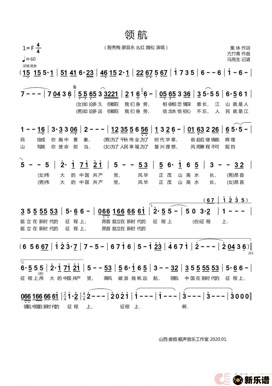 《领航》最新曲谱 殷秀梅/廖昌永/幺红/魏松-曲谱爱好者制谱