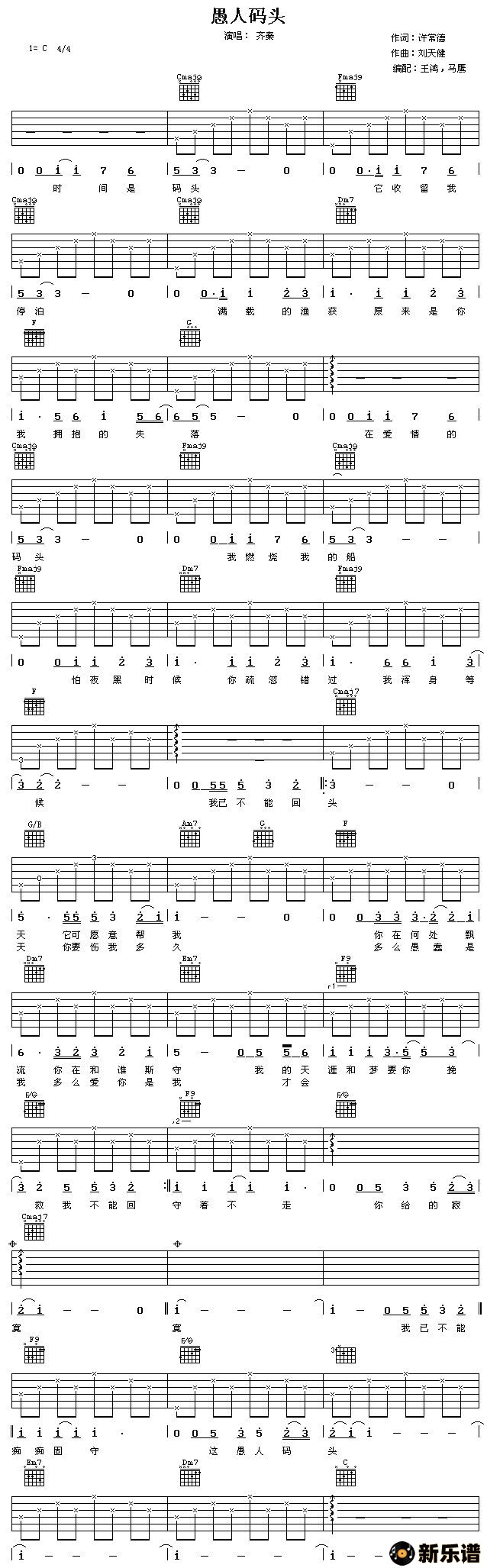 熊天平演唱的愚人码头歌词,愚人码头最新曲谱.