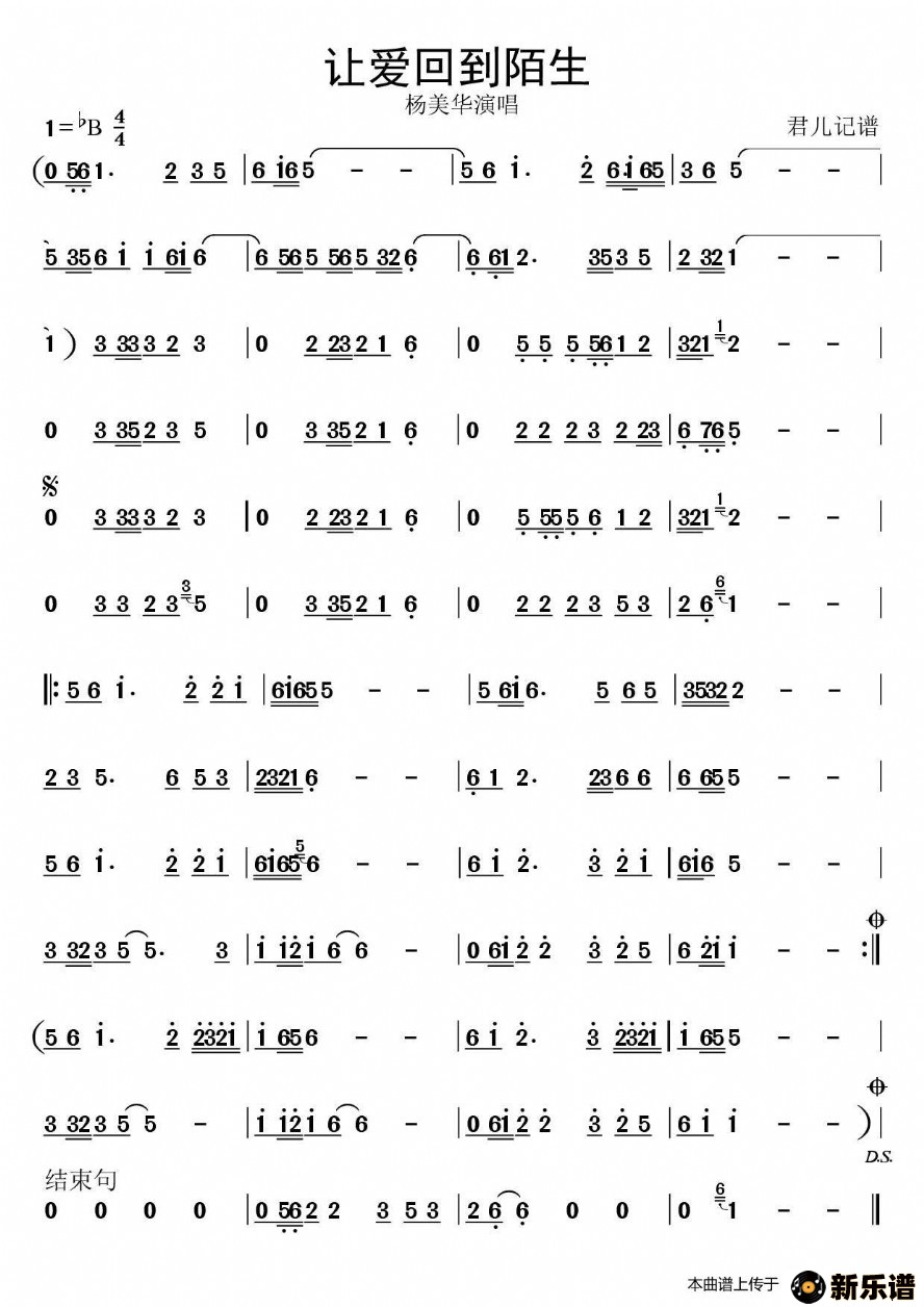 《让爱回到陌生》最新曲谱 杨美华
