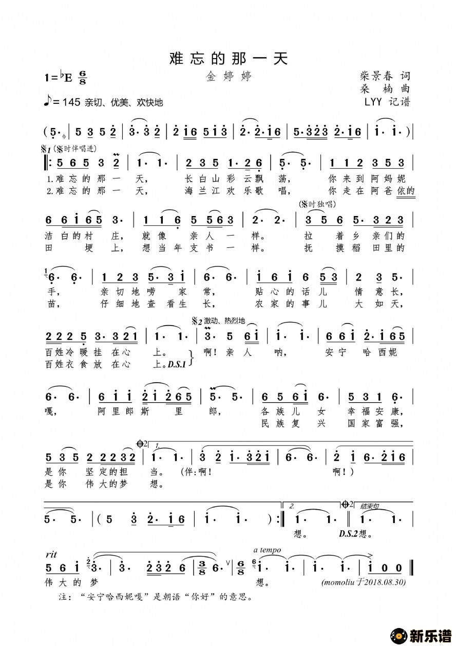 《难忘的那一天》最新曲谱 金婷婷-momoliu制谱