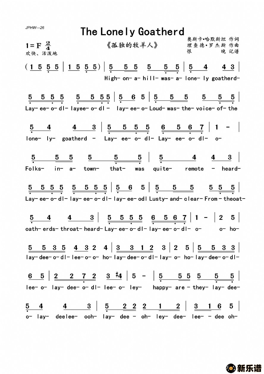 > 孤独的牧羊人最新曲谱