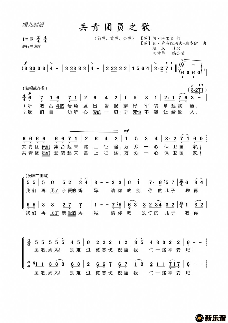 演唱的共青团员之歌歌词,共青团员之歌最新曲谱.