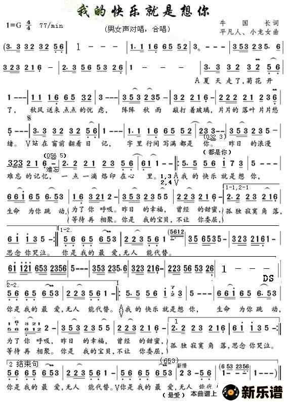 我的快乐就是想你最新曲谱