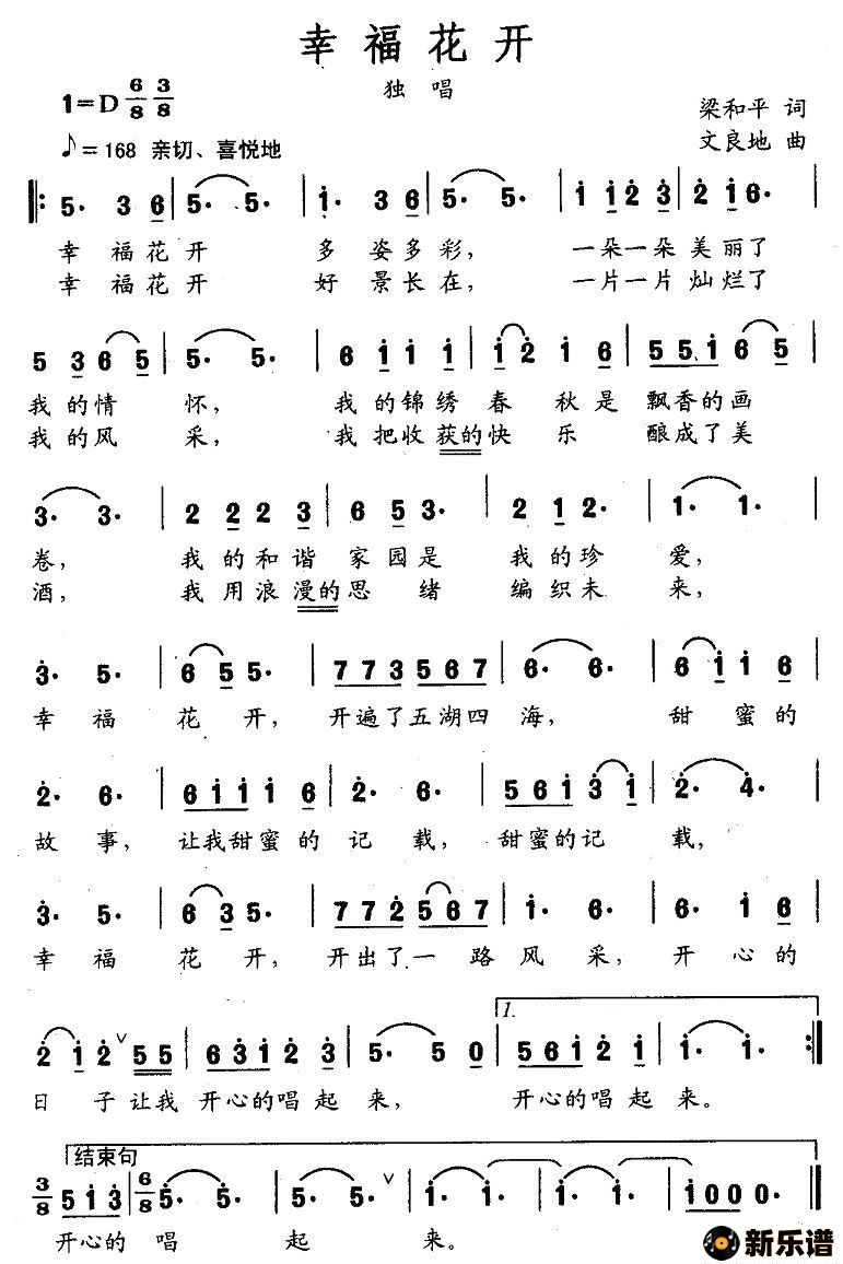 演唱的幸福花开歌词,幸福花开最新曲谱.