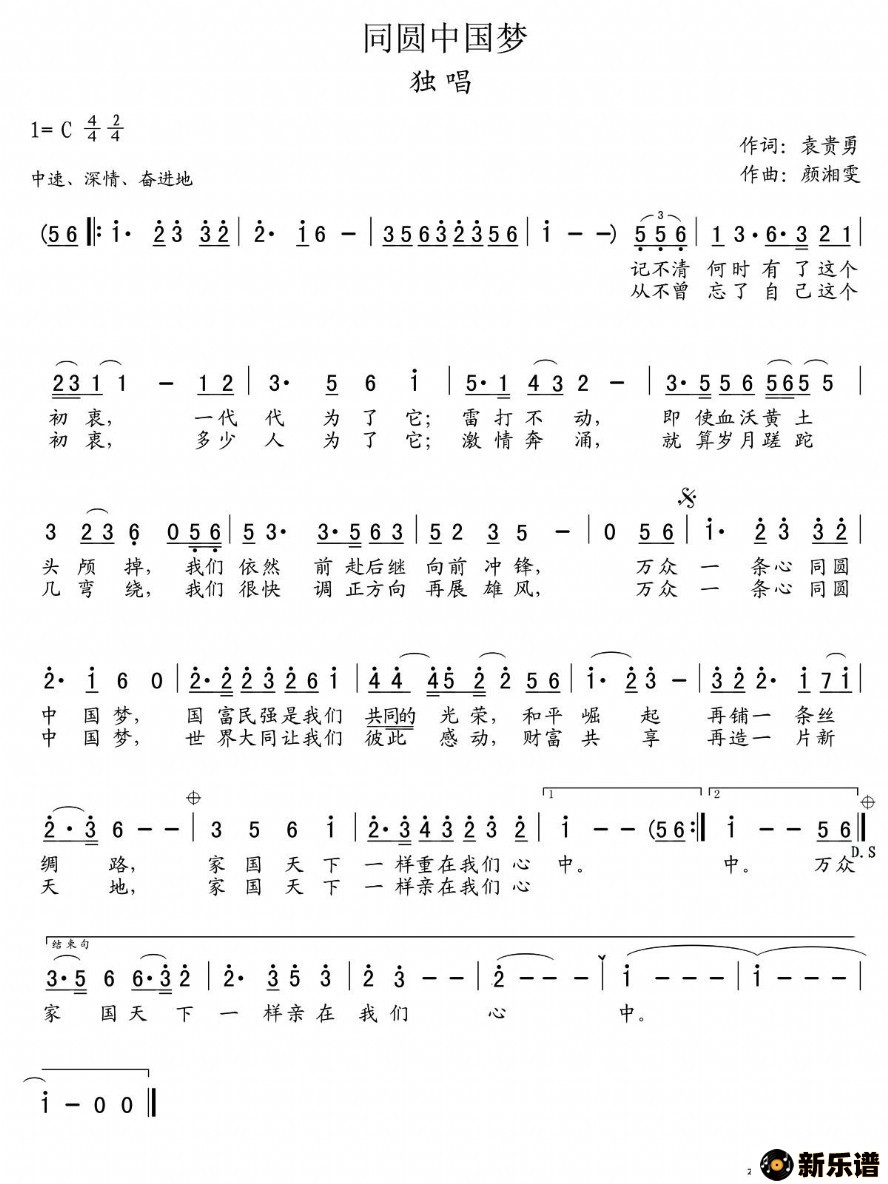 演唱的同圆中国梦歌词,同圆中国梦最新曲谱.