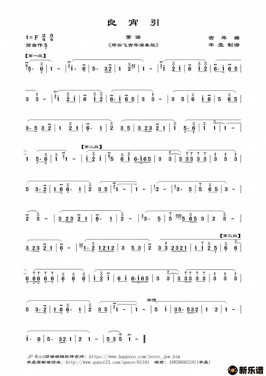 箫演奏演唱的良宵引歌词,良宵引最新曲谱.