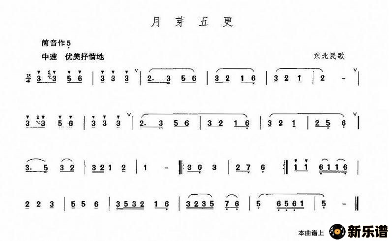 演唱的月芽五更歌词,月芽五更最新曲谱.
