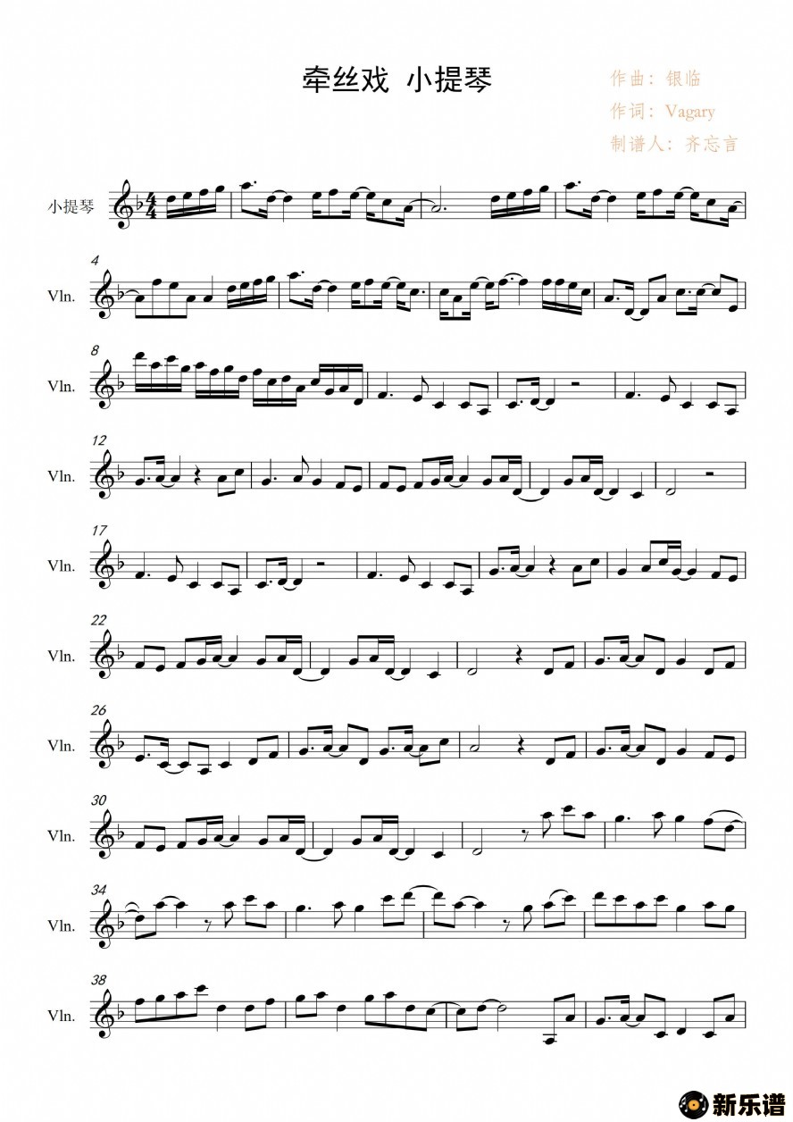 作词:Vagary 作曲:银临(小提琴谱)