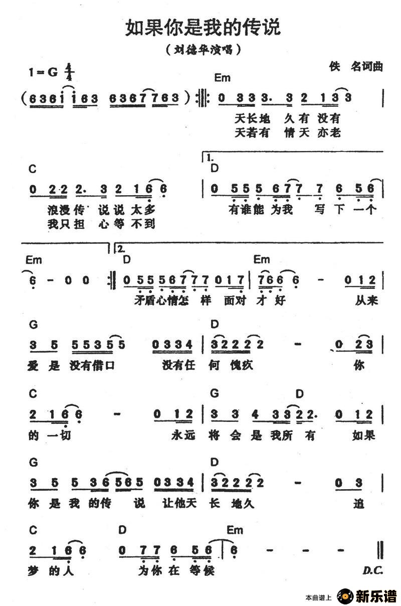 刘德华演唱的如果你是我的传说歌词,如果你是我的传说最新曲谱.